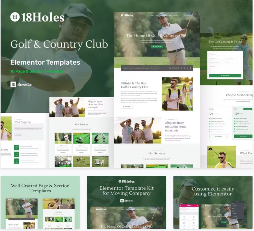 Las plantillas vienen separadas por carpeta e incluyen screenshots de cada pagina para que puedas verla antes de importarlas a Elementor