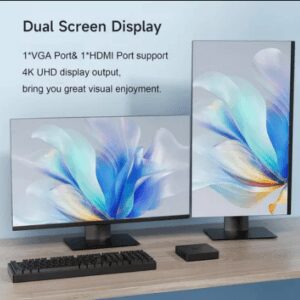 – Pantalla dual y gráfico Intel HD: las mini computadoras son compatibles con contenido de ultra alta definición HD y 4K (3840 x 2160), puedes disfrutar de navegación web 4K, reproducción de video, ver televisión, cine en casa y disfrutar del entretenimiento con tu familia. Puerto HDMI/VGA que conecta fácilmente dos monitores, reduce el tiempo de espera, eficiencia duplicada.