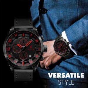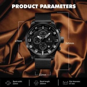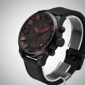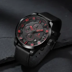 Su diseño robusto con cronómetro funcional 🕒, fecha 📆 y malla de cuero sintético 🧵